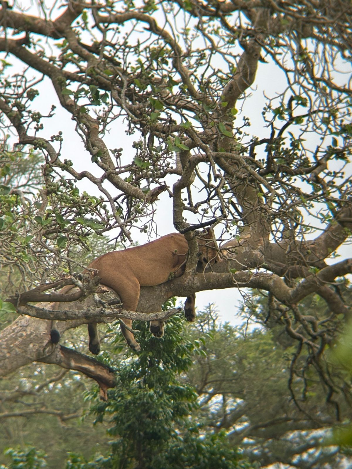 On Day 5, after breakfast, the family checked out and drove to the Ishasha sector for a morning game drive. Here, they had the rare and exciting opportunity to see the famed tree-climbing lions. Later, they checked in at Ishasha’s Topi Lodge for dinner and an overnight stay.